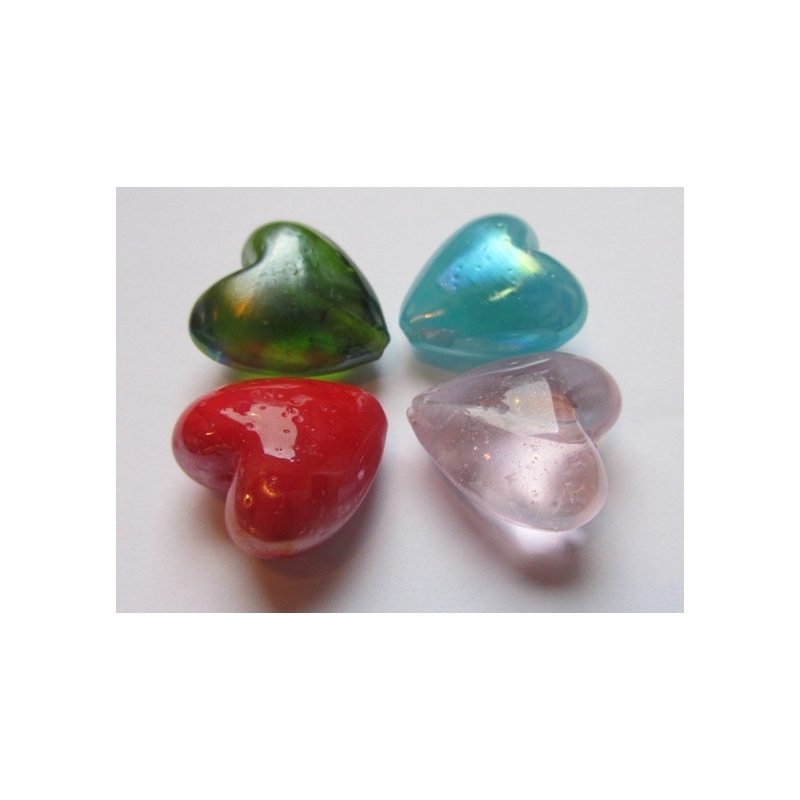 Hjerter af glas i 4 forskellige farver. Nedenfor vælger du farve på hjerterne.