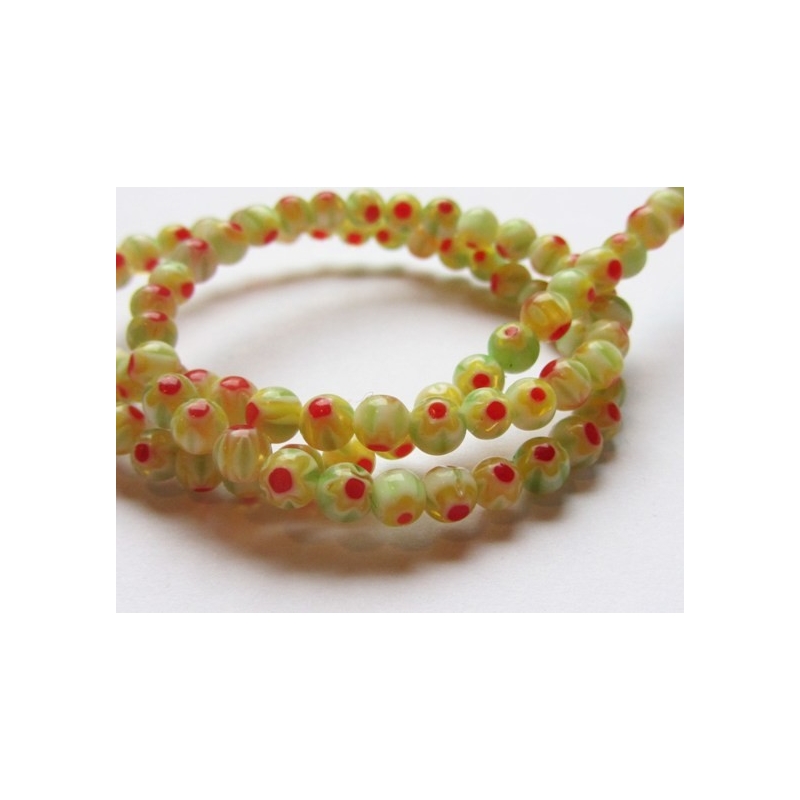 Runde glasperler - lucky eye - gule. Str. ca. 4 mm. Hulstr. ca. 0,5 mm. Antal på streng ca. 100 stk. Prisen er for 1 streng.