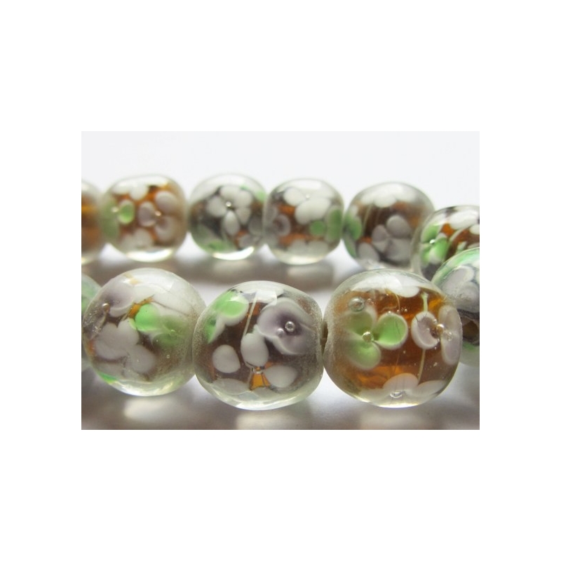 Håndlavede lampwork perler. Str. ca. 12 x 13 mm. Hulstr. ca. 2 mm. Antal på streng: 28 stk. Prisen er for 1 streng.