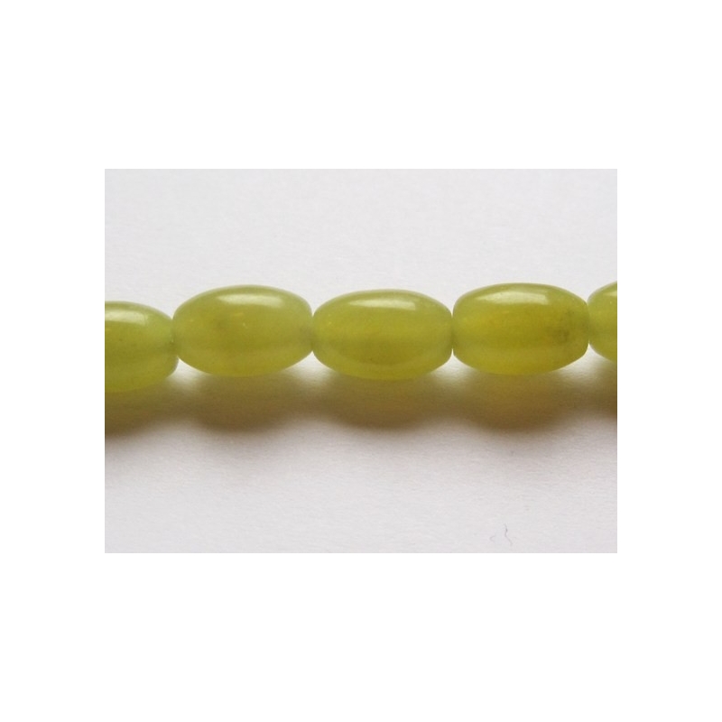 Aflange perler af lysegrøn jade. Str. ca. 9 x 6 mm. Hulstr. ca. 1 mm. Prisen er for 4 stk.