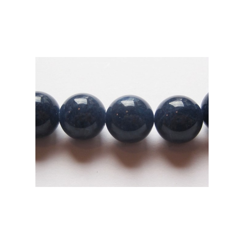 Runde perler af mørkeblå jade. Str. på perler: ca. 10 mm. Hulstr.: ca. 1,2 mm. Antal på streng: ca. 40 stk. Prisen er for 1 streng.