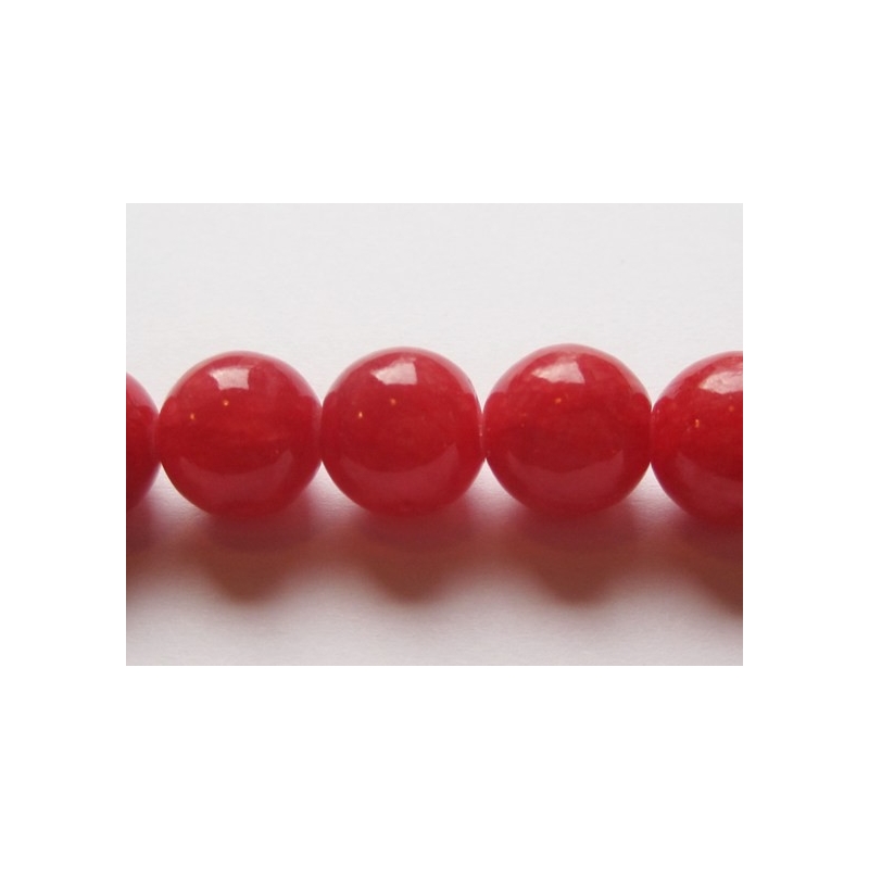 Runde perler af cheriserød jade. Str. ca. 12 mm. Hulstr. ca. 1,2 mm. Antal på streng: ca. 33 stk. Prisen er for 1 streng.