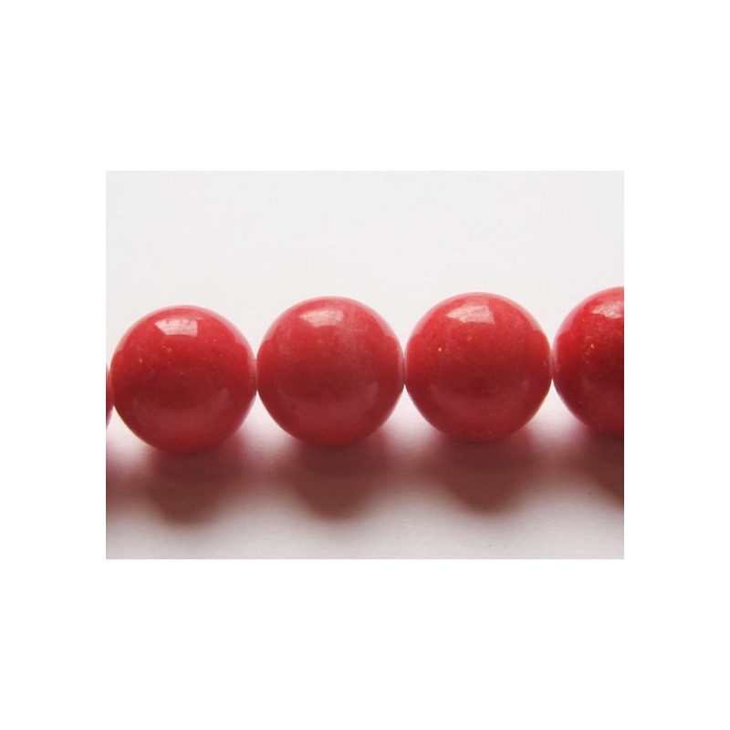 Runde perler af cheriserød jade. Str. ca. 12 mm. Hulstr. ca. 1,2 mm. Antal på streng: ca. 33 stk. Prisen er for 1 streng.