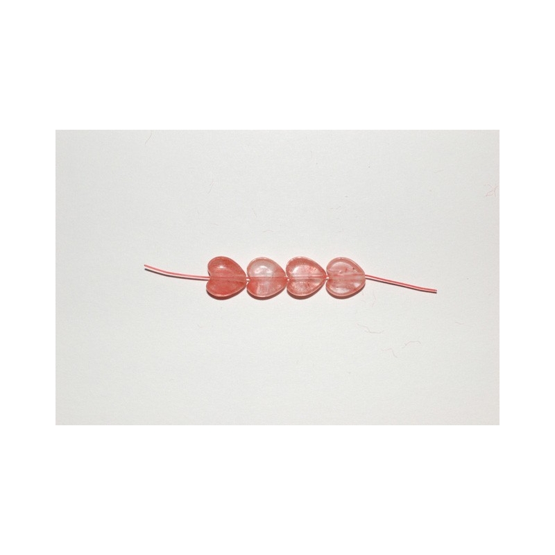 Hjerter af jordbær quartz. Str.: ca. 9 x 9 x 5 mm. Hulstr.: ca. 1 mm. Antal på streng: ca. 50 stk. Prisen er for 1 streng.
