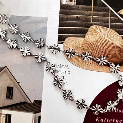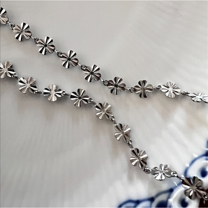 Kæde af rustfrit stål med firkløvere - de enkelte led kan også bruges som mellemperle.