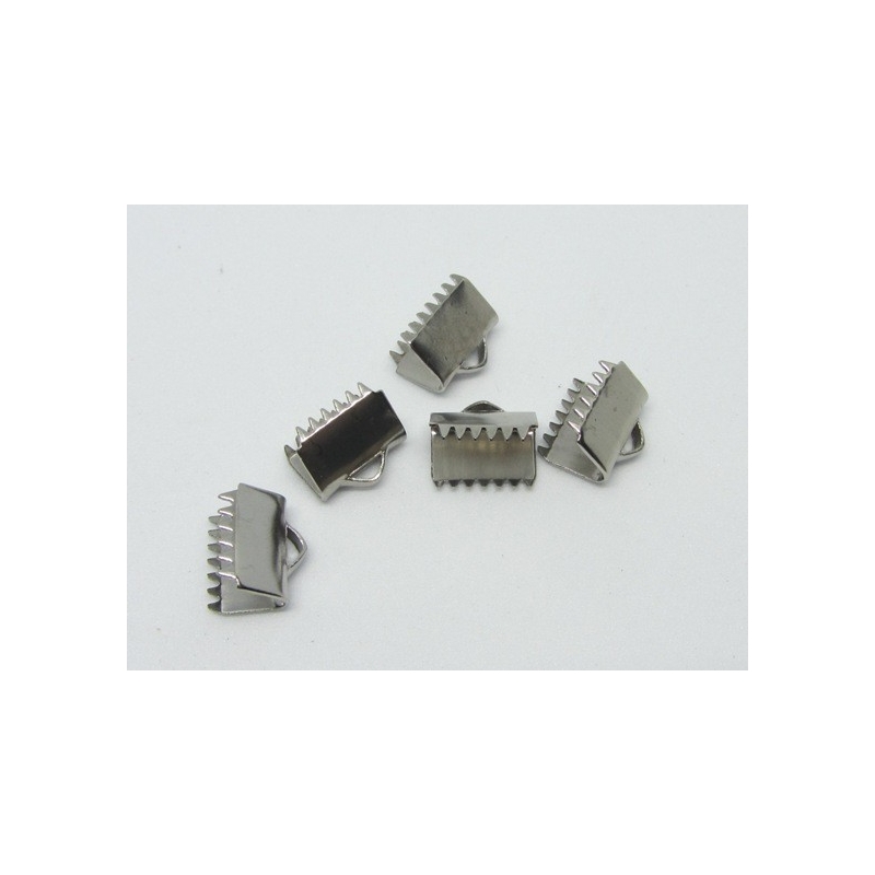 Klemlås af sølvfarvet jern - bl.a. velegnet til at samle lædersnor. Str. - som på billede: ca. 13 x 9 mm. Prisen er for 10 stk.