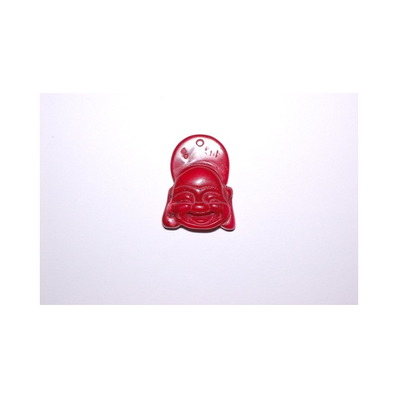 Ansigt med en glad Budda i rød koral. Str. ca. 17x17 mm. Hulstr. ca. 1,5 mm. - går lodret gennem hovedet. Prisen er for 1 stk.