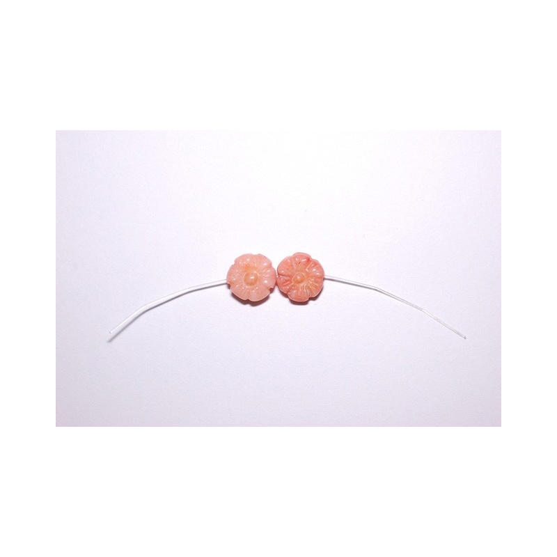Topboret (anboret) blomster af lyserød koral. Str. på blomster: ca. 12 x 6 mm. Prisen er for 2 stk.