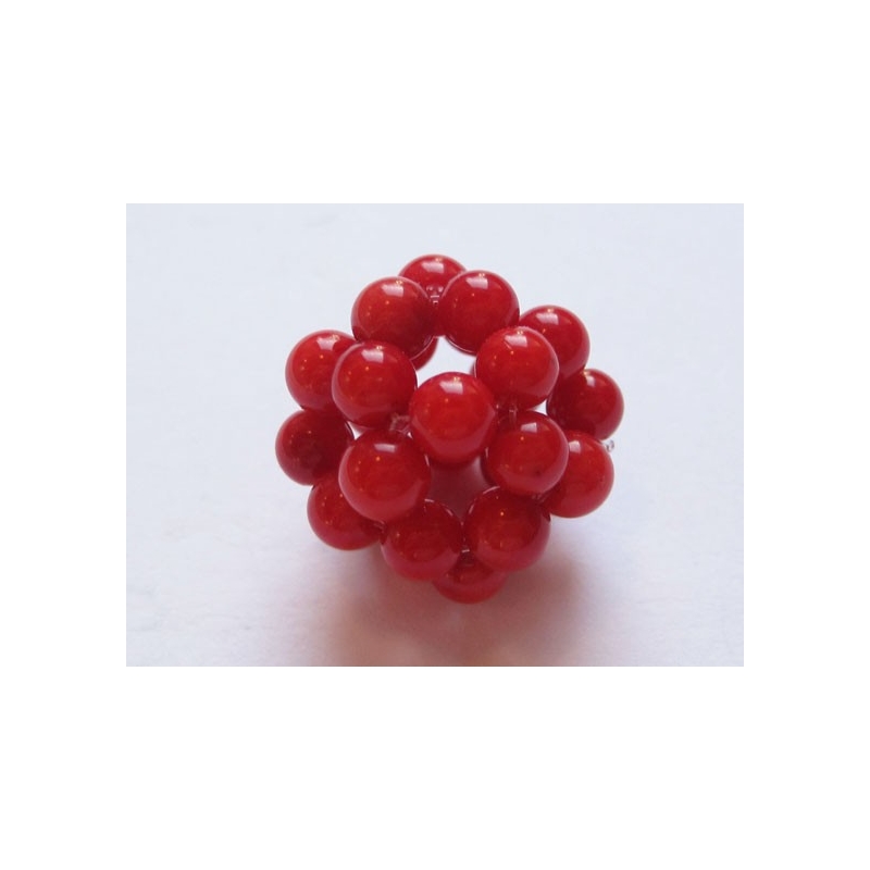 Runde perler af rød svampekoral. Str.: ca. 12 mm. Prisen er for 4 stk.