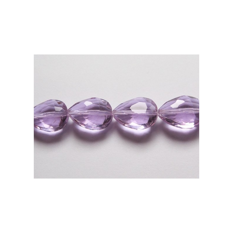 Facetslebne krystal dråber. Str. på perler: ca. 12 x 17 mm. Hulstr.: ca. 1 mm. Antal på streng: ca. 30 stk. Prisen er for 1 streng.