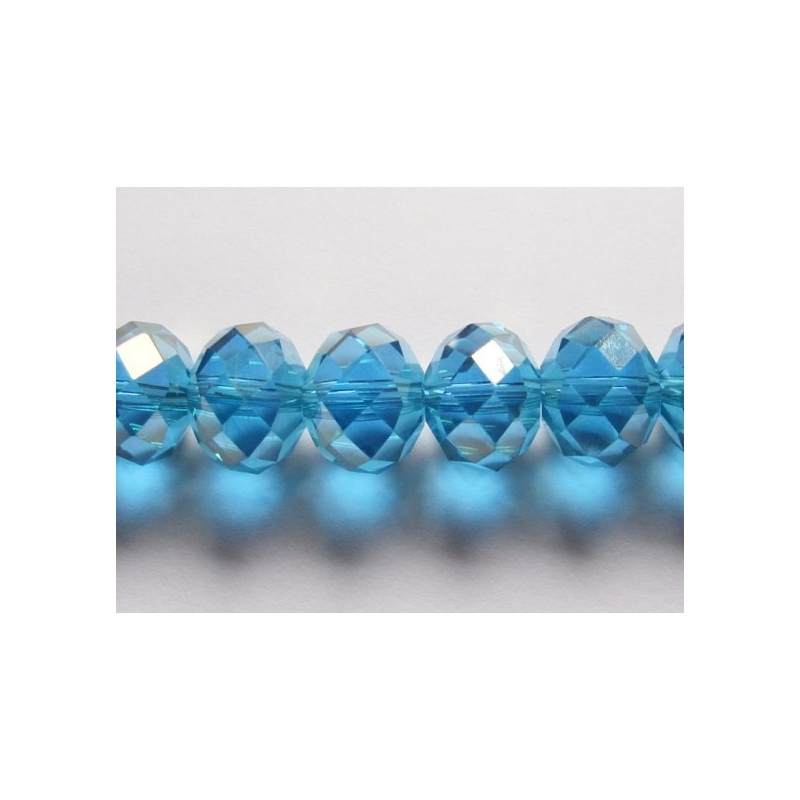 Facetslebne blå perler af krystal. Str. på perler: ca. 7 x 9 mm. Hulstr.: ca. 1,2 mm. Prisen er for 10 stk.
