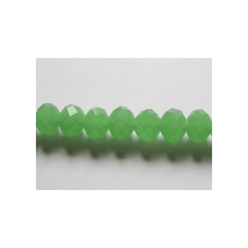 Facetslebne grønne perler af krystal. Str. på perler: ca. 7 x 9 mm. Hulstr.: ca. 1,2 mm. Prisen er for 10 stk.