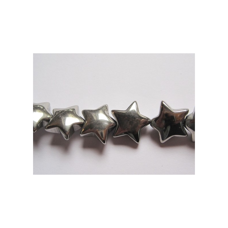 Stjerner af sølvfarvet krystal. Str. ca. 13 x 6 mm. Hulstr. ca. 1 mm. Antal på streng: ca. 33 stk. Prisen er for 1 streng.