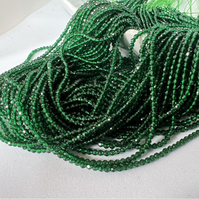 Runde facetslebne perler af krystal - grøn.