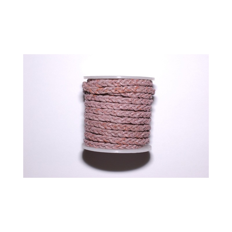 Lys rosafarvet flettet lædersnor - perfekt til læderkæder, armbånd m.m. Tykkelse - 3 mm. Prisen er pr. meter.