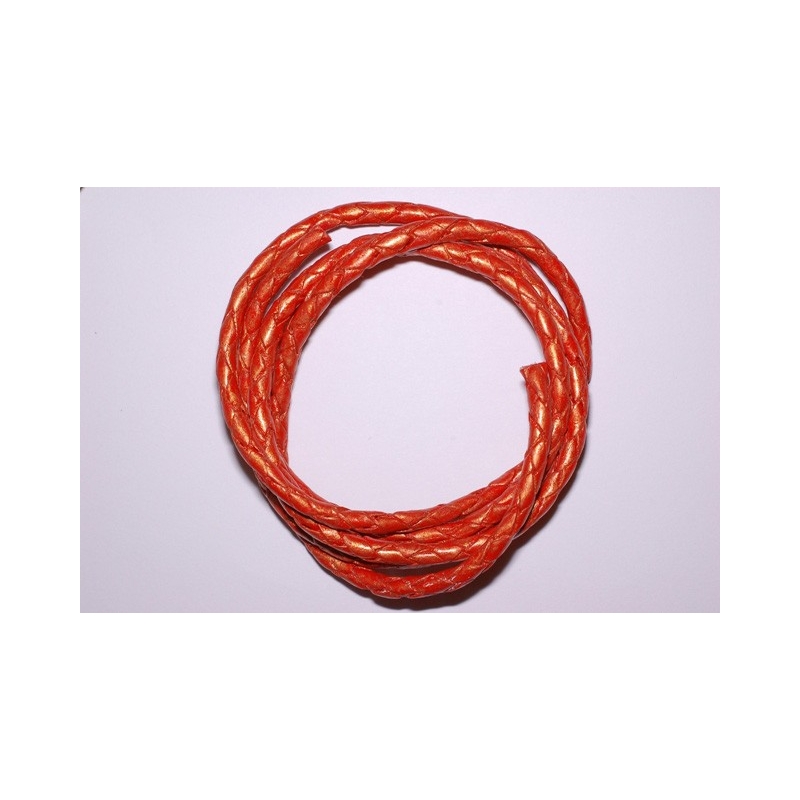 Rød flettet lædersnor - perfekt til læderkæder, armbånd m.m. Tykkelse - 3 mm. Prisen er pr. meter.