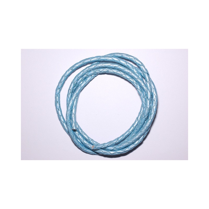 Lyseblå flettet lædersnor - perfekt til læderkæder, armbånd m.m.