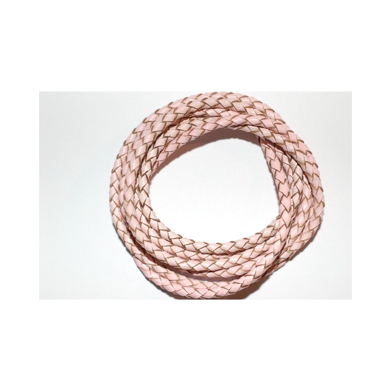 Lys rosafarvet flettet lædersnor - perfekt til læderkæder, armbånd m.m.