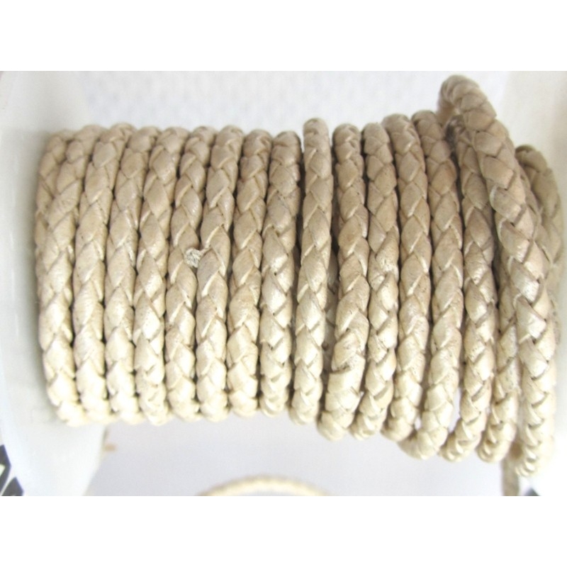 Råhvid flettet lædersnor - perfekt til læderkæder, armbånd m.m. Tykkelse - ca. 6 mm. Prisen er pr. meter.