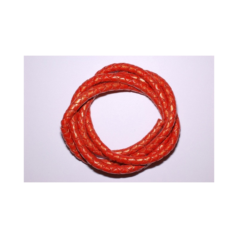 Rød flettet lædersnor - perfekt til læderkæder, armbånd m.m. Tykkelse - 3 mm. Prisen er pr. meter.
