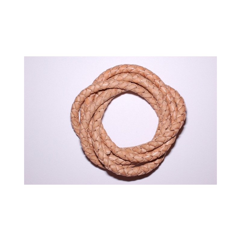 Råhvid flettet lædersnor - perfekt til læderkæder, armbånd m.m. Tykkelse - 4 mm. Prisen er pr. meter.