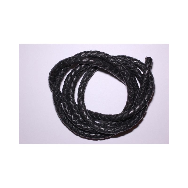 Sort flettet lædersnor - perfekt til læderkæder, armbånd m.m. Tykkelse - 4 mm. Prisen er pr. meter.
