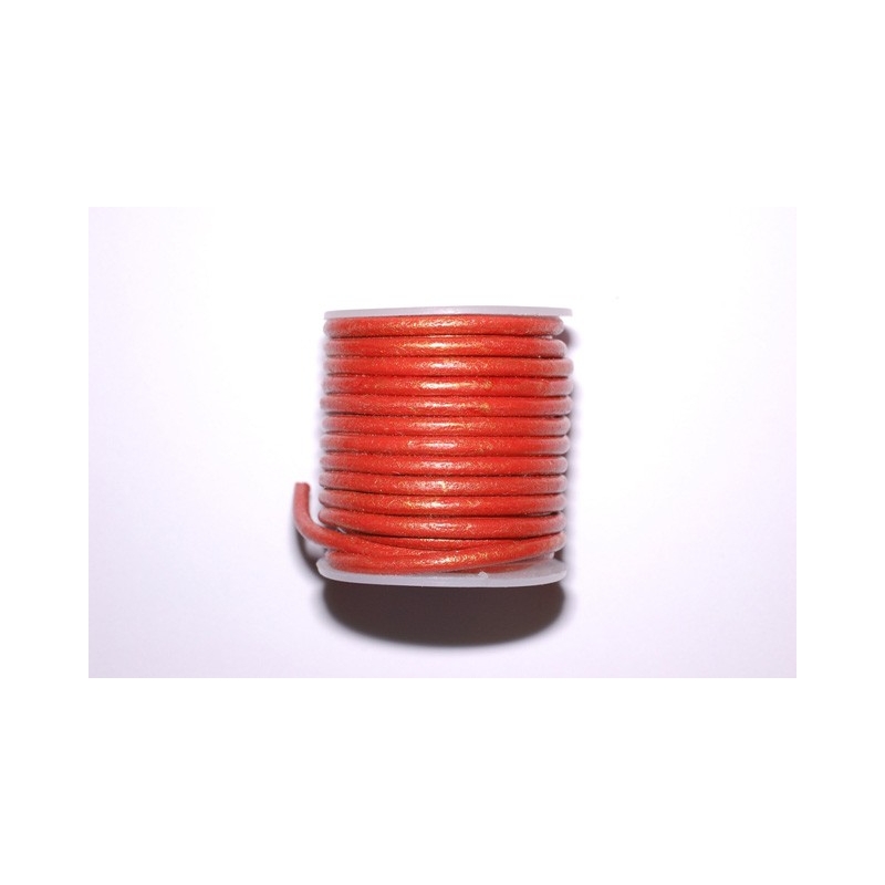 Koralrød lædersnor - perfekt til læderkæder, armbånd m.m. Tykkelse - 3 mm. Prisen er for 5 meter.