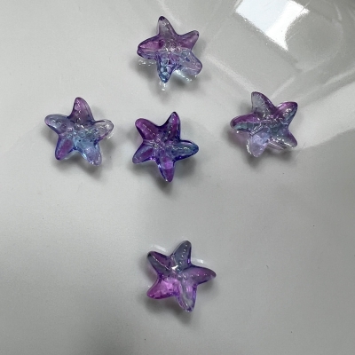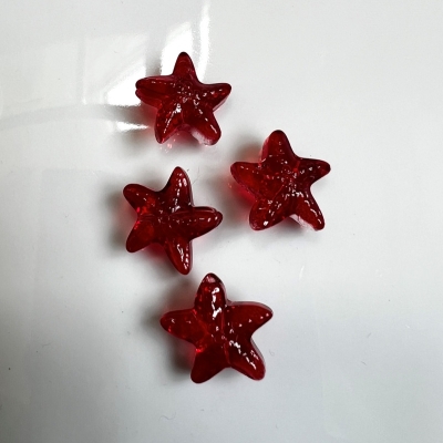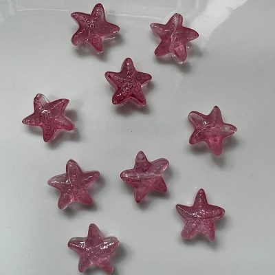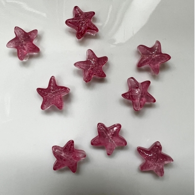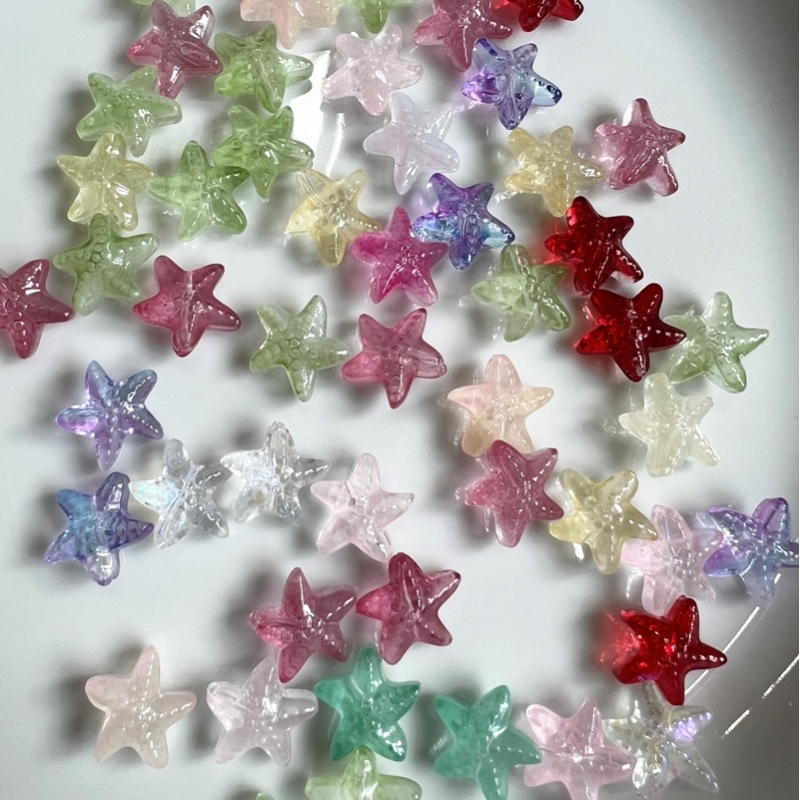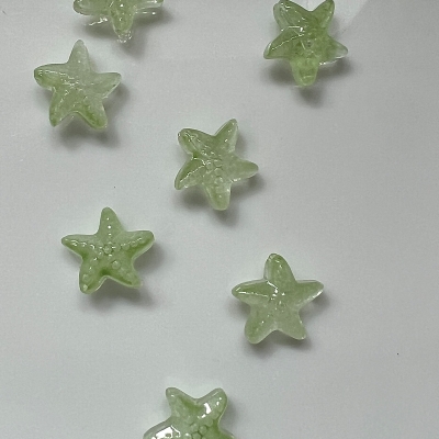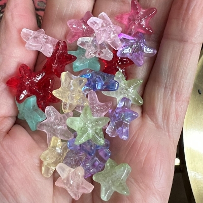 Lampwork søstjerner i forskellige farver.