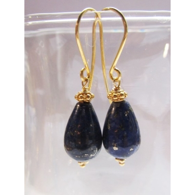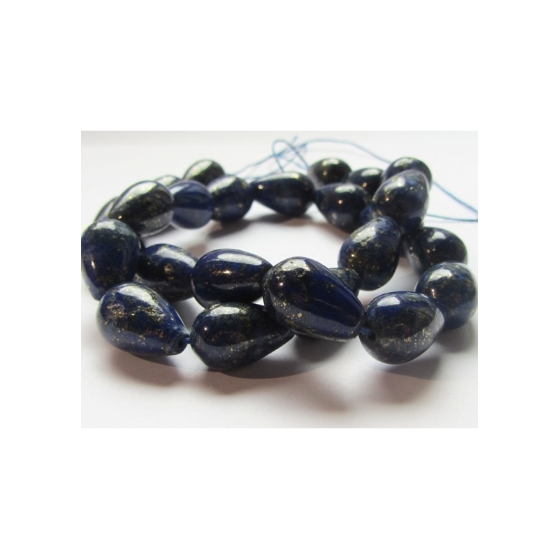 Dråbeformede sten af lapis lazuli. Str. ca. 12 x 16 mm. Hul str. ca. 1,2 mm. Antal på streng: ca. 25 stk. Prisen er for 1 streng.