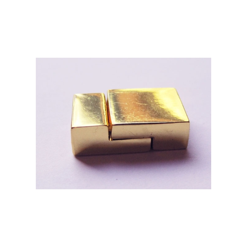 Kraftig magnetlås - guldfarvet. Kan anvendes til såvel lædersnor på 9 mm. eller flere lædersnore, der samlet fylder 9 mm. Udvendigt mål: ca. 26 x 10 mm. Passer til 9 mm. Prisen er for 1 stk.
