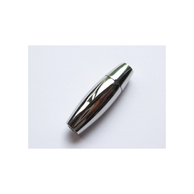 Superstærk sølvfarvet magnetlås - med hul igennem midten. Magneten er stærk nok til at holde en større perlekæde !! Magneten monteres ved trække sin tråd igennem magnetens lille hul, hvorefter der laves et par knuder, der virker som lås og samtidig gemmes tråden i magnetens store hul. Udvendigt mål: ca. 11 x 6 mm. Huldiameter: ca. 1 mm. Prisen er pr. sæt.