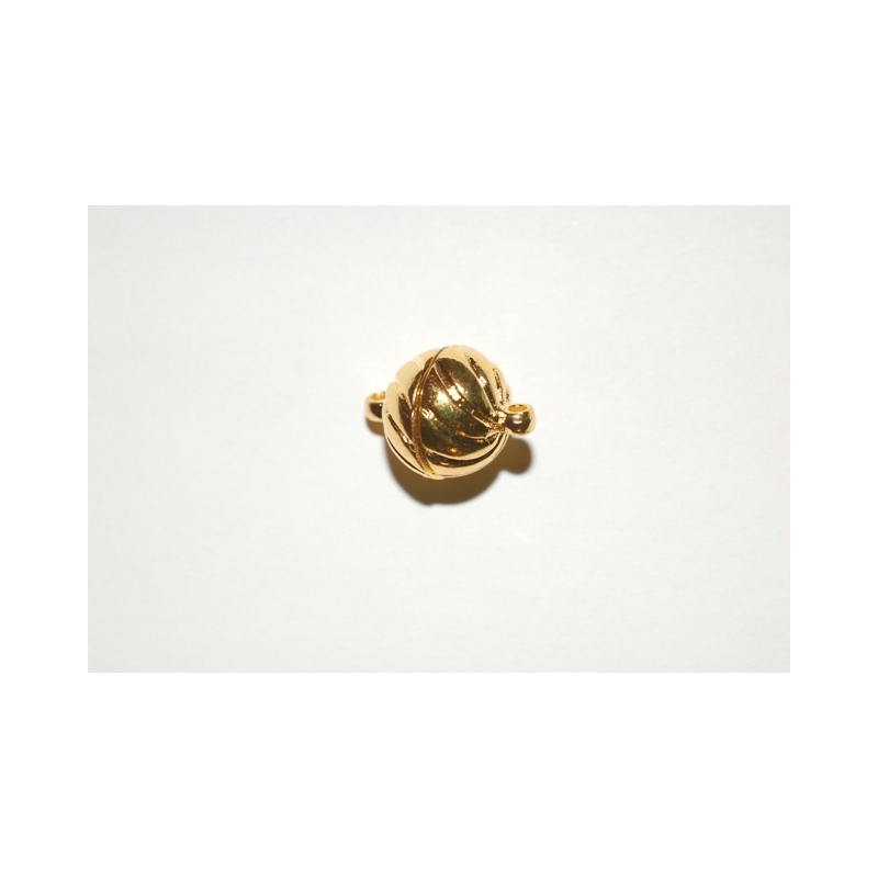 Guldfarvet rund magnetlås.