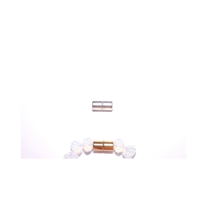 Superstærk sølvfarvet magnetlås - med hul igennem midten. Magneten er stærk nok til at holde en større perlekæde !!