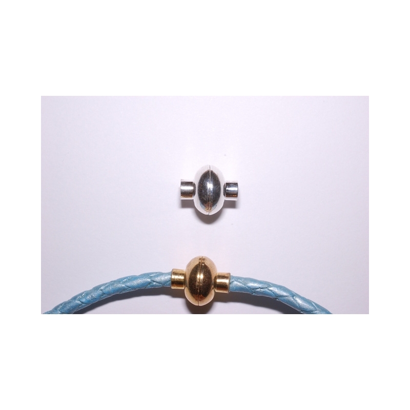 Kraftig magnetlås - sølvfarvet. Kan anvendes til såvel lædersnor på 8 mm. eller flere lædersnore, der samlet fylder 8 mm. Udvendigt mål: ca. 24 x 9 mm. Passer til 8 mm. Prisen er for 1 stk.