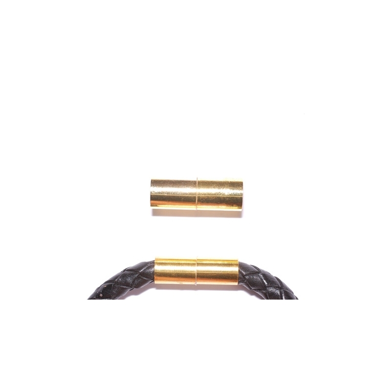 Kraftig magnetlås - guldfarvet. Kan anvendes til såvel lædersnor på 8 mm. eller flere lædersnore, der samlet fylder 8 mm. Udvendigt mål: ca. 24 x 9 mm. Passer til 8 mm. Prisen er for 1 stk.
