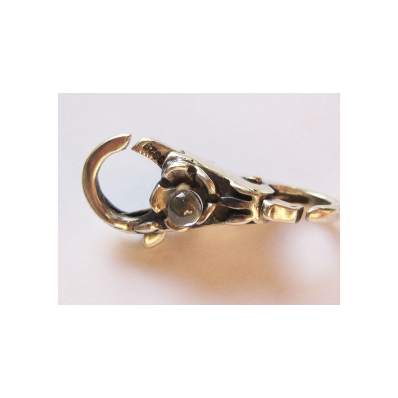 S-lås af sterling sølv. Str.: ca. 5 x 9 mm. Trådtykkelse: ca. 0,8 mm. Prisen er pr. stk.