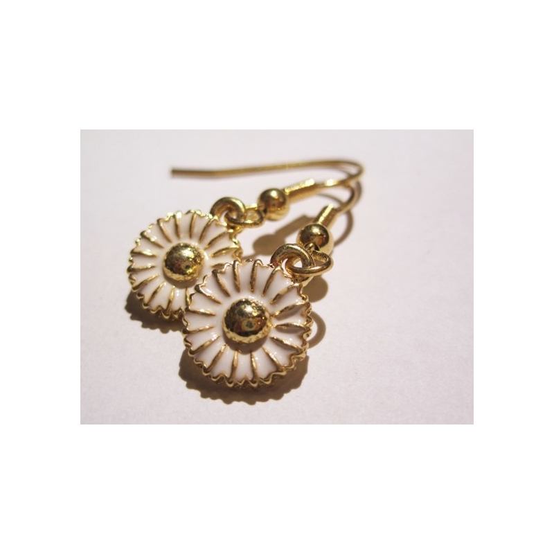 Ørekroge med vedhæng af marguerit - er af emaljeret zink - er naturligvis bly og nikkel frit.