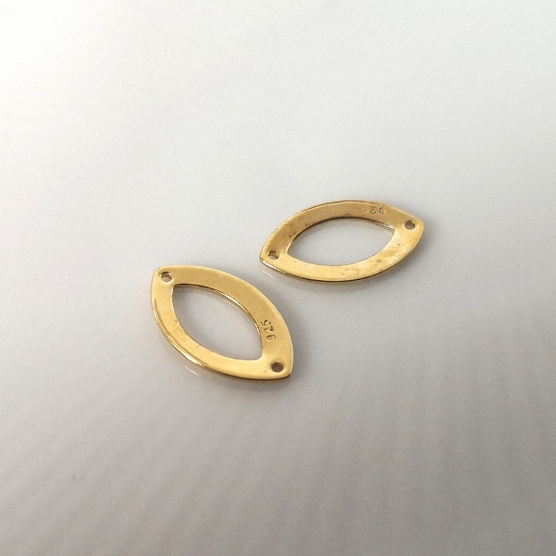 Bildæk af forgyldt sterling sølv. Str.: ca. 4 x 2,2 mm. Hul str.: ca. 1,4 mm. Prisen er for 2 stk.
