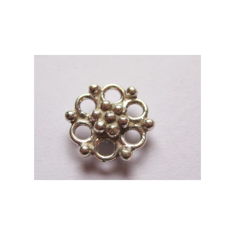 Kugle med mønster af oxideret sølv. Str. ca. 12 mm. Hulstr. ca. 1,2 mm. Prisen er for 1 stk.