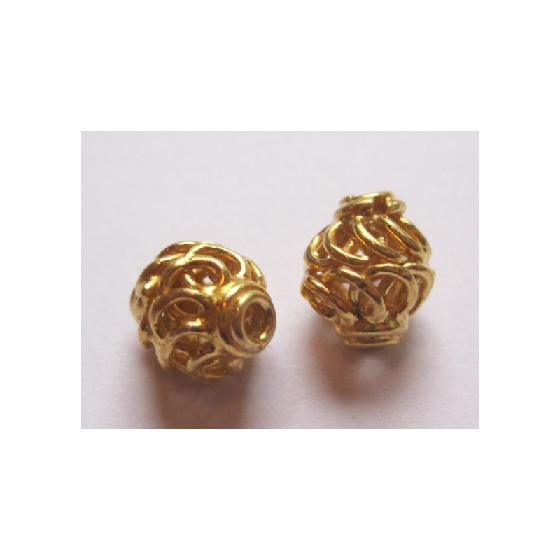 Runde perler af forgyldt sterling sølv. Str. ca. 2 mm. Hul str. ca. 0,8 mm. Prisen er for ca. 100 stk.