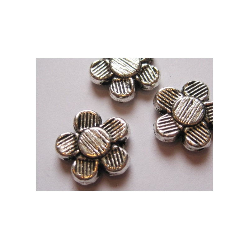 Sølvfarvede mellemled - med grå blomster. Str. 9 x 8 mm. Hulstr. ca. 4 mm. Prisen er for 2 stk.