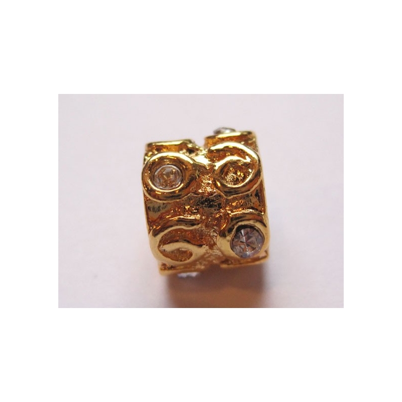 Rhinestone rondel med klare sten - guldfarvet. Str. 16 x 8 mm. Hulstr. ca. 5 mm. Er velegnede til armbånd - passer også til Pandora og Troldekugler. Prisen er pr. stk.