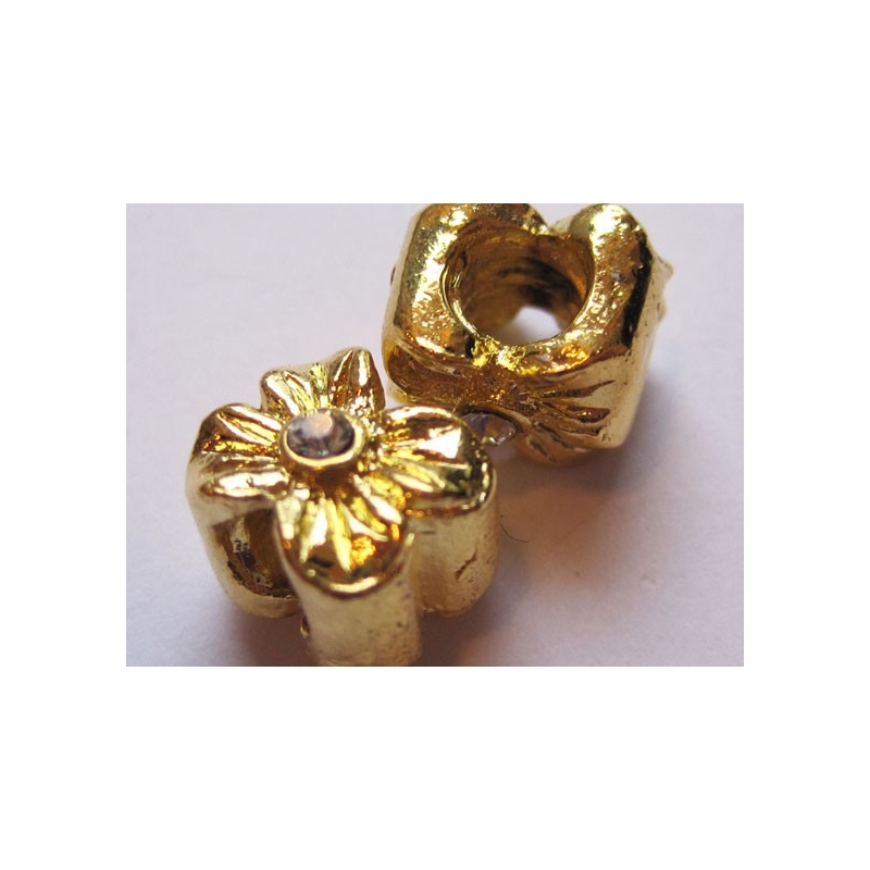 Guldfarvede mellemled - med lyserøde blomster. Str. 9 x 8 mm. Hulstr. ca. 4 mm. Prisen er for 2 stk.