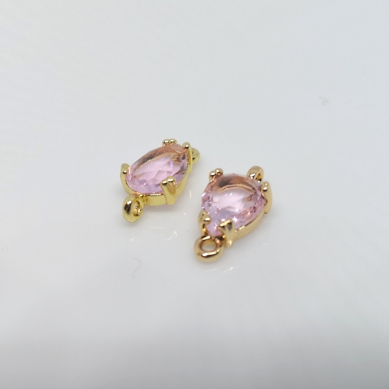 Mellemperle med lys pink krystal og holder af guldfarvet messing.