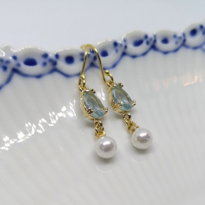 Mellemperle med krystal og holder af guldfarvet messing. Der er øje i begge ender. Str. ca. 8 x 6 x 4 mm. Hul str. i øje ca. 1 mm. Prisen er for 1 stk.