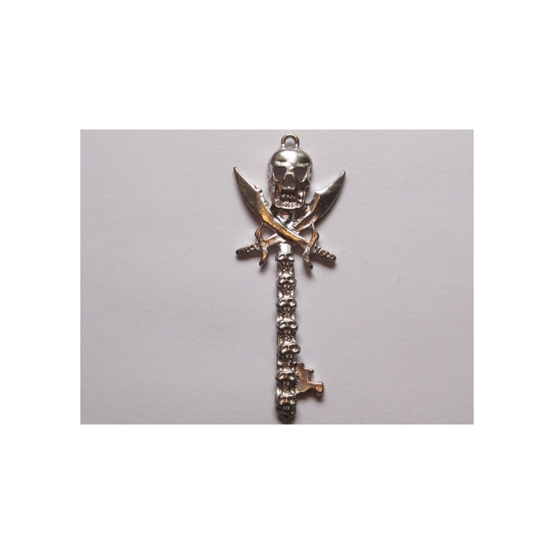 Sølvfarvede sørøvernøgle vedhæng - der er kun motiv på den ene side.