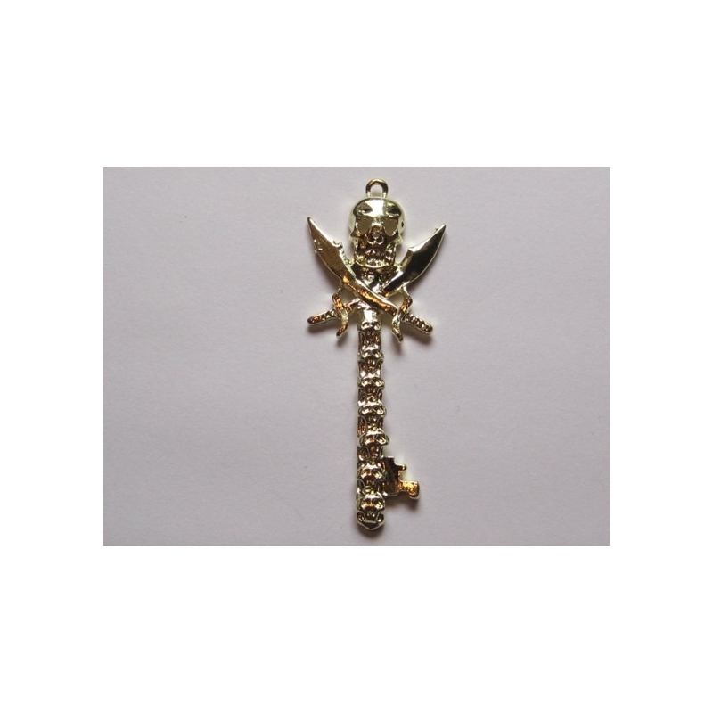 Guldfarvede sørøvernøgle vedhæng - der er kun motiv på den ene side.