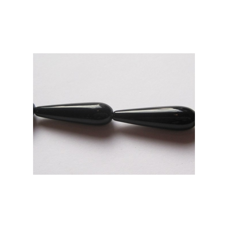 Store dråbeformede perler af onyx. Str.: ca. 8 x 30 mm. Hul.str.: ca. 1 mm. Antal på streng: ca. 14 stk. Prisen er for 1 streng.