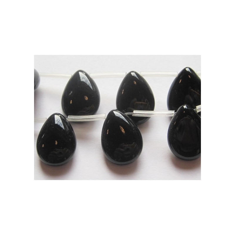 Dråbeformede perler af onyx. Str.: ca. 12 x 17 mm. Hulstr.: ca. 1,5 mm. Antal på streng: ca. 22 stk. Prisen er for 1 streng.