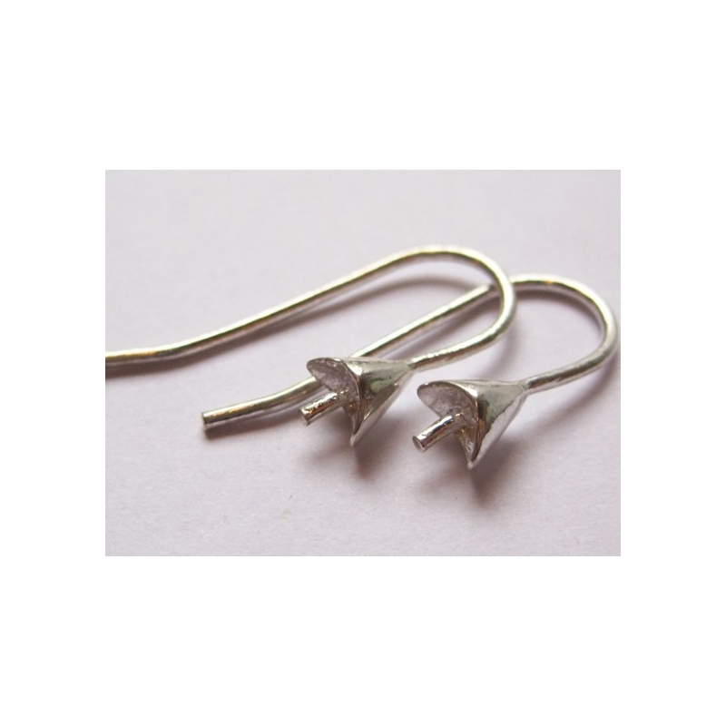 Ørekroge af sterling sølv med perleskål og stift til anborede perler. Stiften kan afkortes efter behov og perler limes nemt fast med sekundlim.